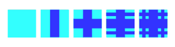 Investigate the successive areas of light blue. What fraction of the total area of the square does the area of light blue take up in each case?