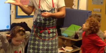 This Thursday was our last morning with Dave who’s been volunteering in our class this half term. He’s been helping us make rockets and jet packs and teaching us to draw animals. He’s going to train to be a chef so, in honour of this, we spent the morning making jam and cream cheese sandwiches! He showed us how we can cut our bread into triangles or rectangles and then taught us how to spread all the way to the sides. Our sandwiches were delicious and after we ate them we had a dance party and threw some shapes on the dancefloor!