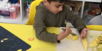 We read and acted out the story of Handa’s Surprise by Eileen Browne. We had so much fun sequencing the story, looking at the patterns on the animals and using our senses to smell the exotic fruits. We then chopped them up and shared them at snack time. They were so yummy!