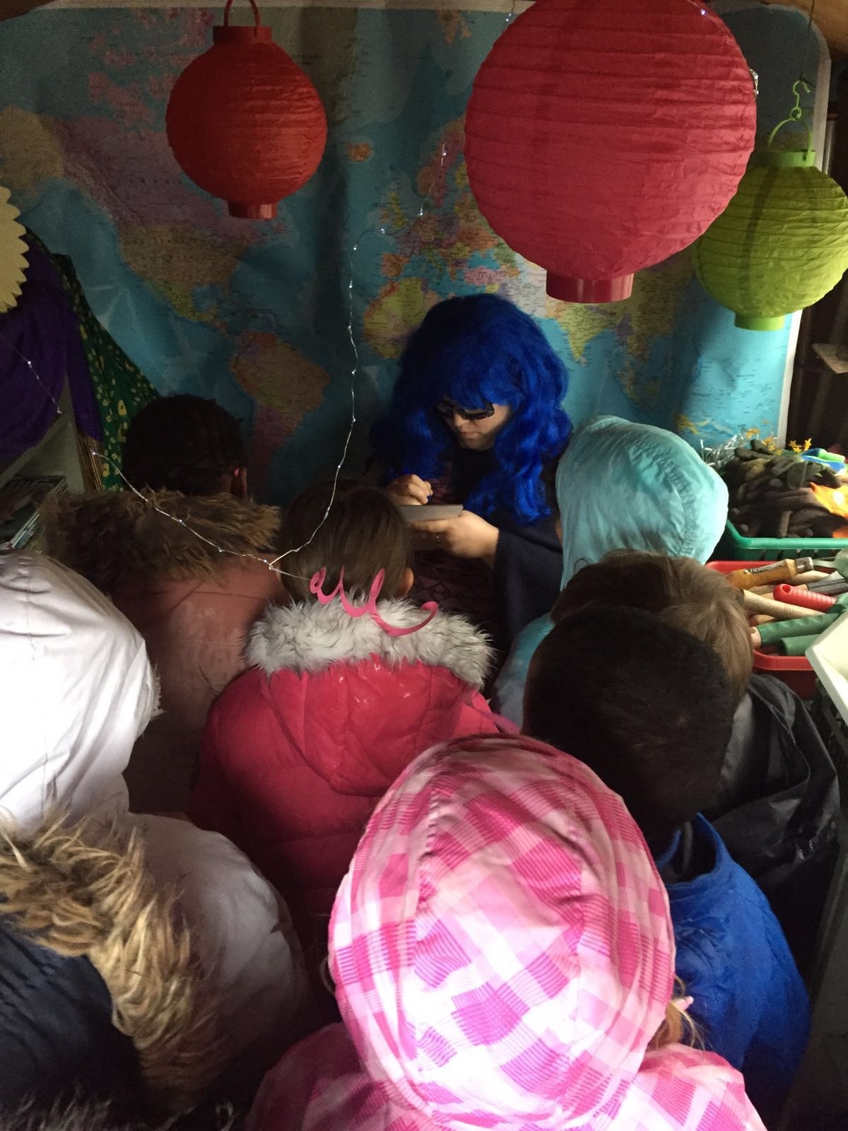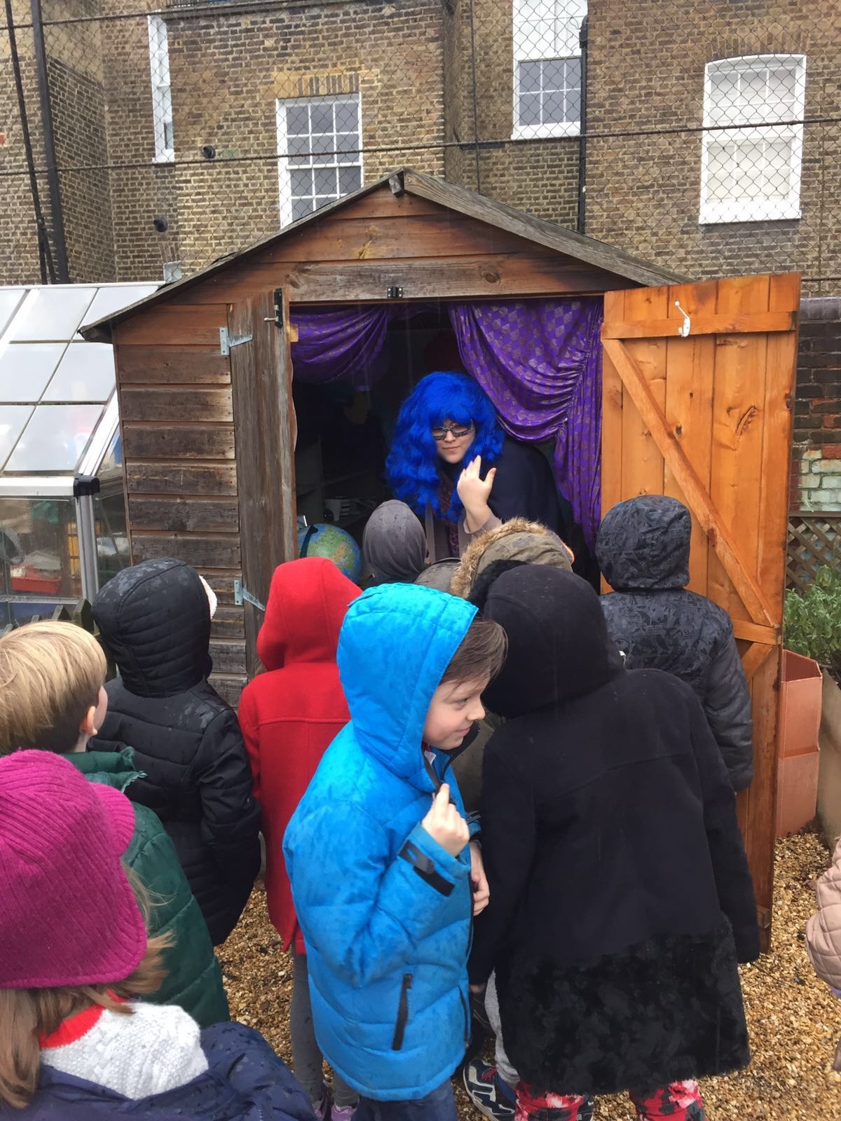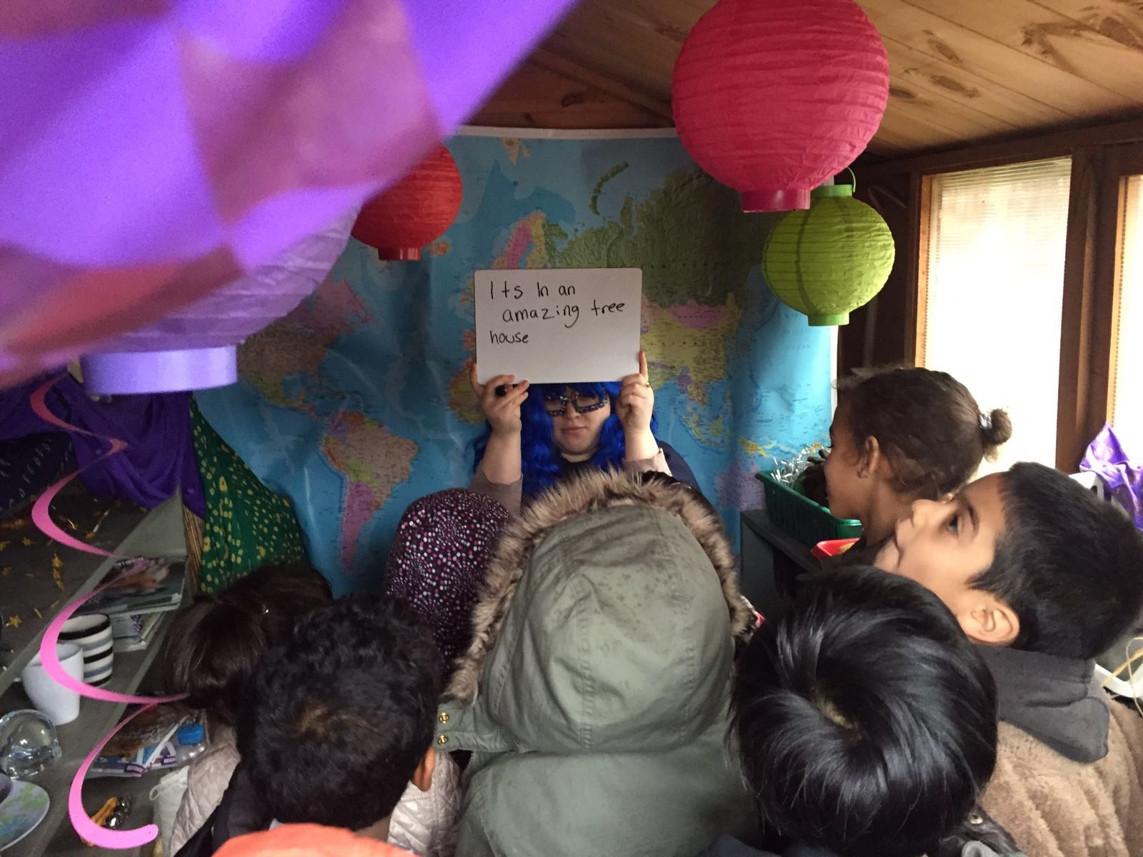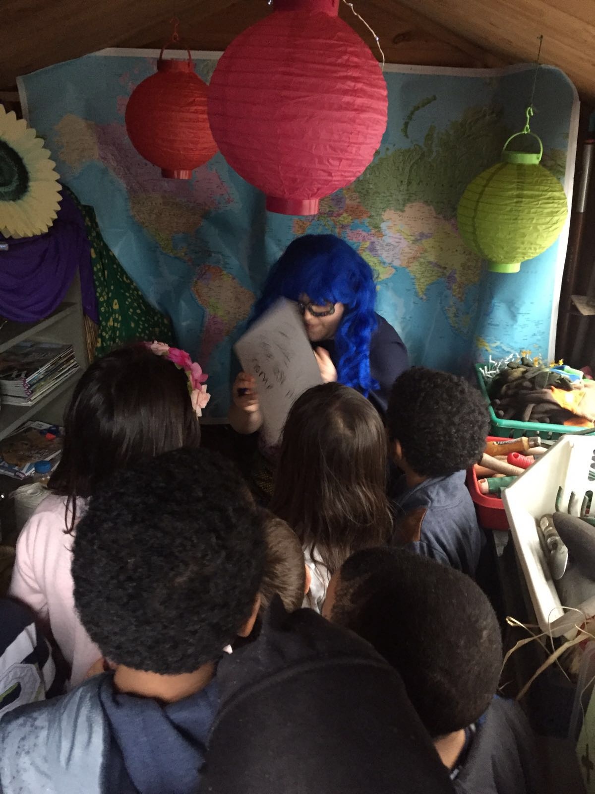 Last week a superhero landed in the garden shed!! Her name was Shiva and we were particularly impressed by her blue hair. We went to investigate and discovered that she was there because her own habitat had been destroyed. We asked her what she needed to survive in her habitat and then we wrote letters to Robin to ask him to help us find her a new home.
