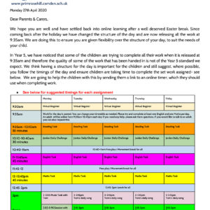 Letter to Parents and Carers - Daily Plans - Week 2