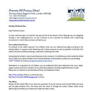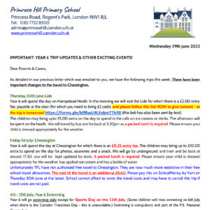 Y2 Camley Street Trip Letter